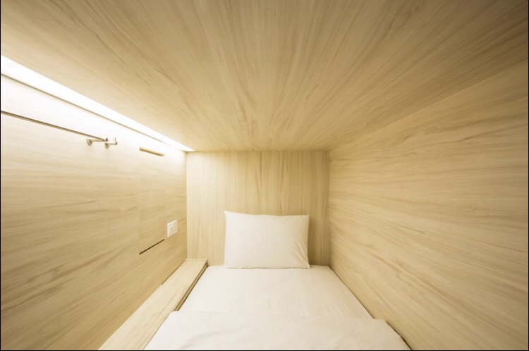 Mujur bilik air berada di luar dan dipisahkan mengikut kelamin. Kejutan budaya? Tidaklah sangat, iman aku tidaklah senipis kulit bawang kalau melihat perempuan. Lagipun aku bakal tinggal dekat capsule hostel, seakan tinggal di dalam keranda di mana kiri kanan bawah atas dan belakang kau tertutup. Cuma ada bahagian hadapan terbuka untuk pergerakan keluar masuk. Sekurangnya adalah penghalang fizikal yang ampuh terbina kalau rasa dinding iman tidak utuh. Ruang katil single yang dibina muatlah untuk saiz seorang manusia di dalam. Bolehlah sambil-sambil baring tu mengingat kematian.
